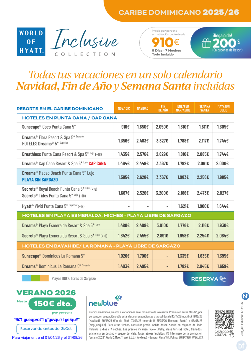 150€ Descuento Reservando antes del 31 Octubre. Promo verano Newblue/Hyatt Caribe Dominicano